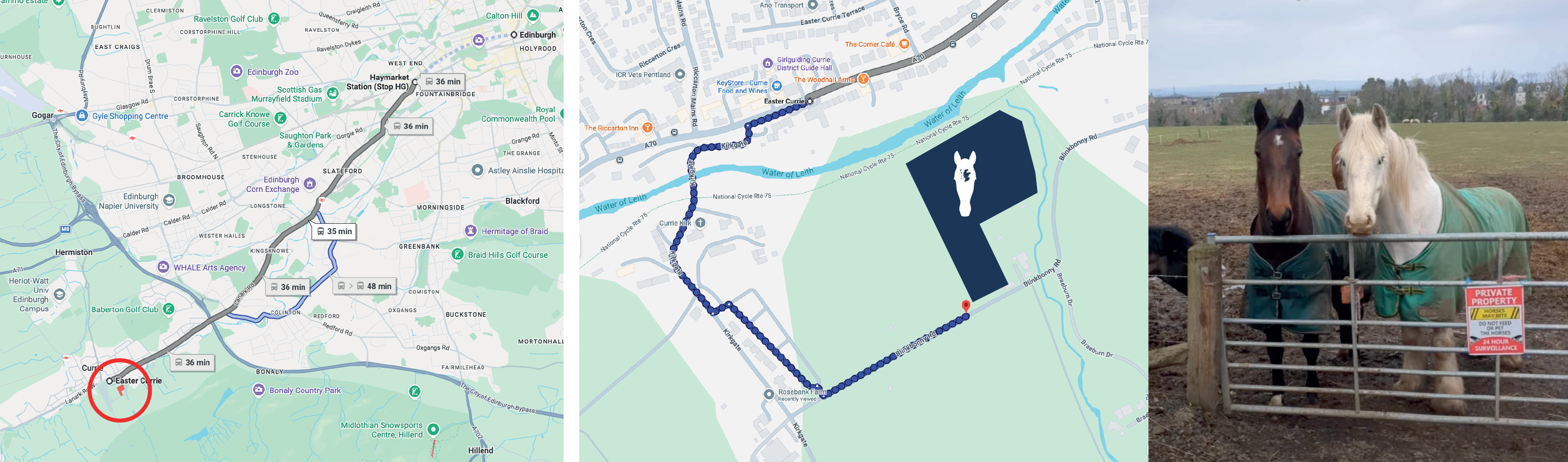 We are based in Currie, just outside Edinburgh, in a field that is part of Rosebank Farm. If you are travelling from Edinburgh by bus, take the number 44 and then enjoy a short 10-minute walk to reach us. If arriving by taxi, you can ask the driver for Rosebank Farm or Blinkibonny Road, and use the map provided for the exact location. If you are coming by car, please park on Blinkibonny Road directly in front of the field.
